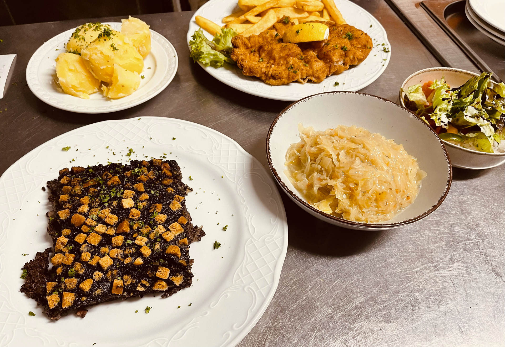 Küche im Gasthof Rotes Ross Zell im Fichtelgebirge mit fränkischen Spezialitäten